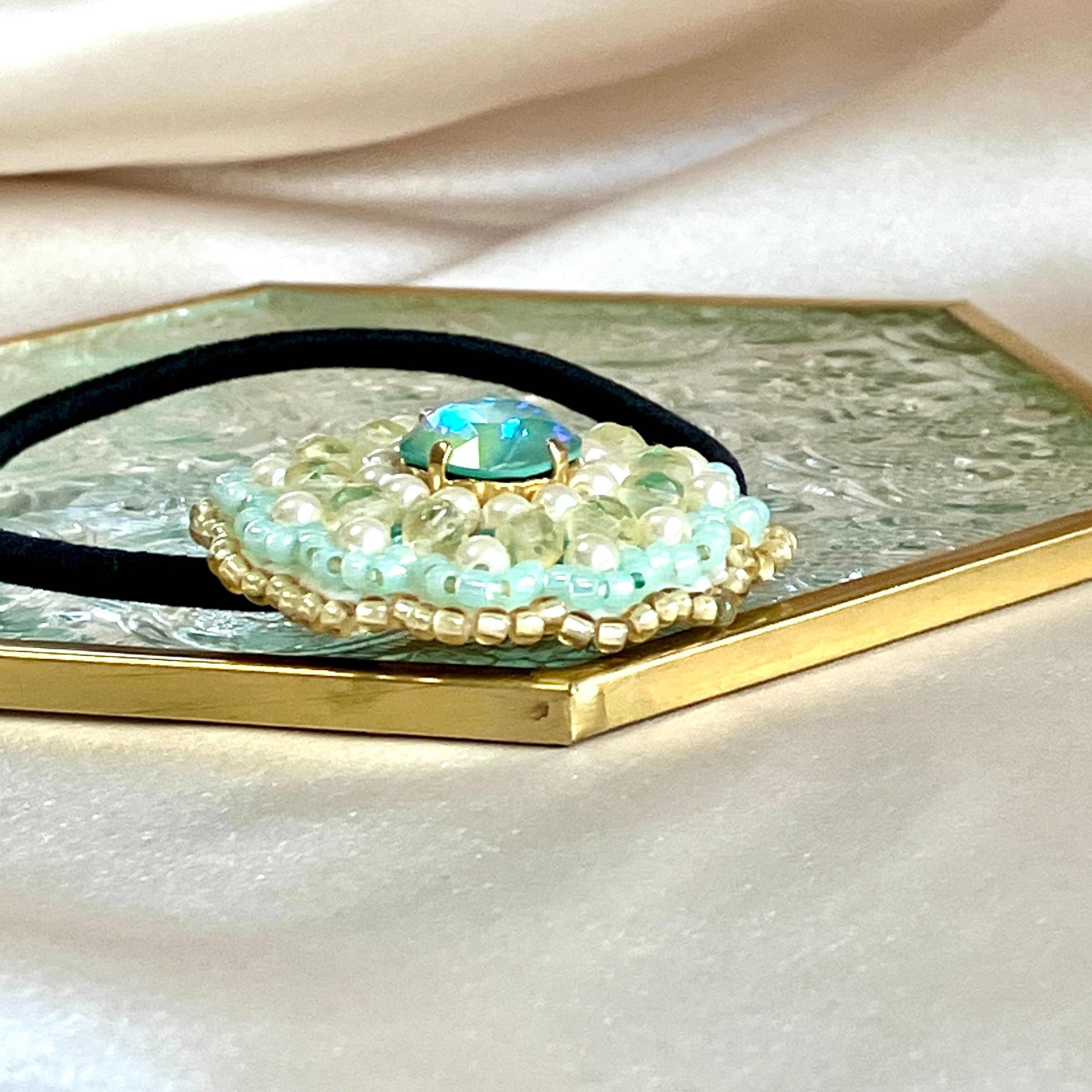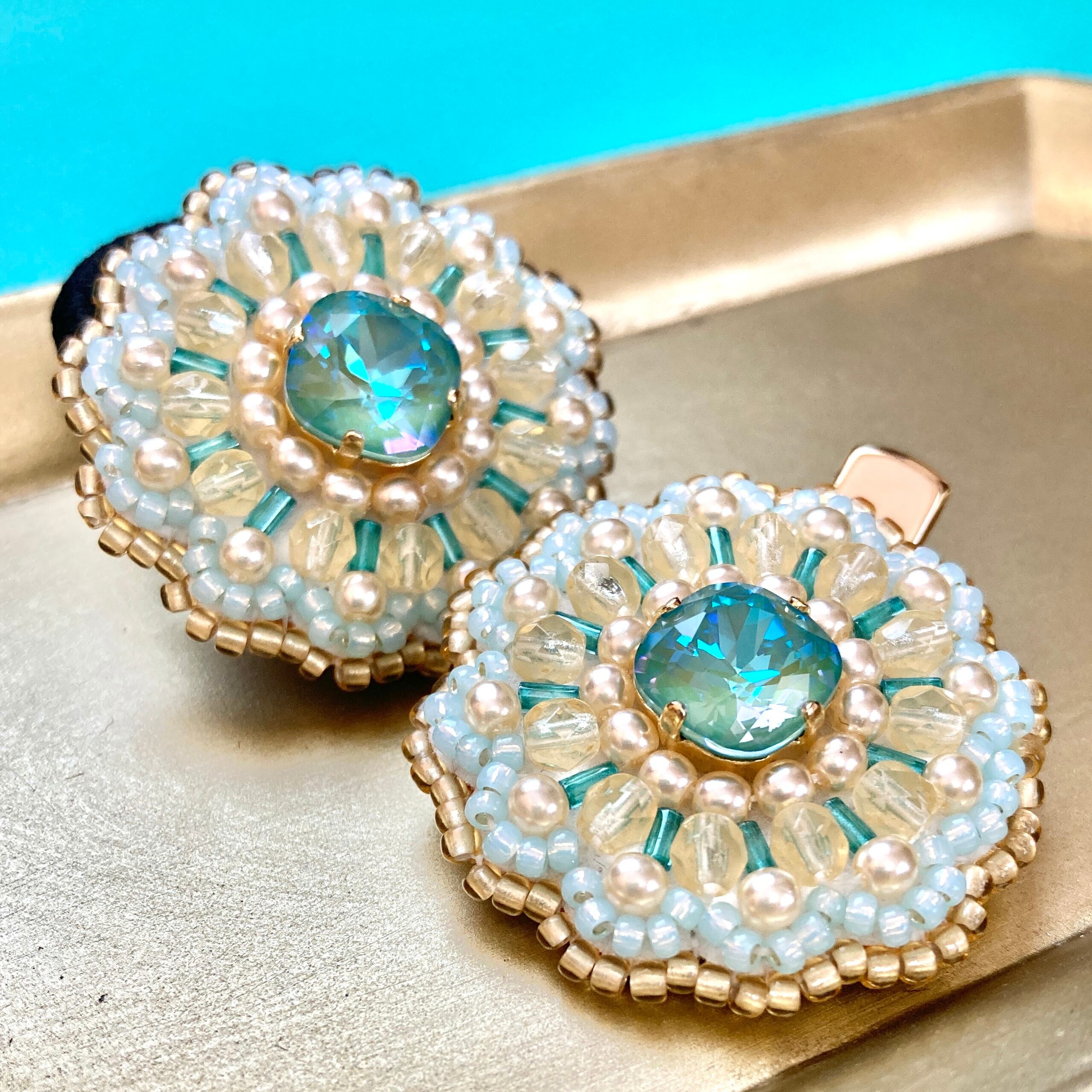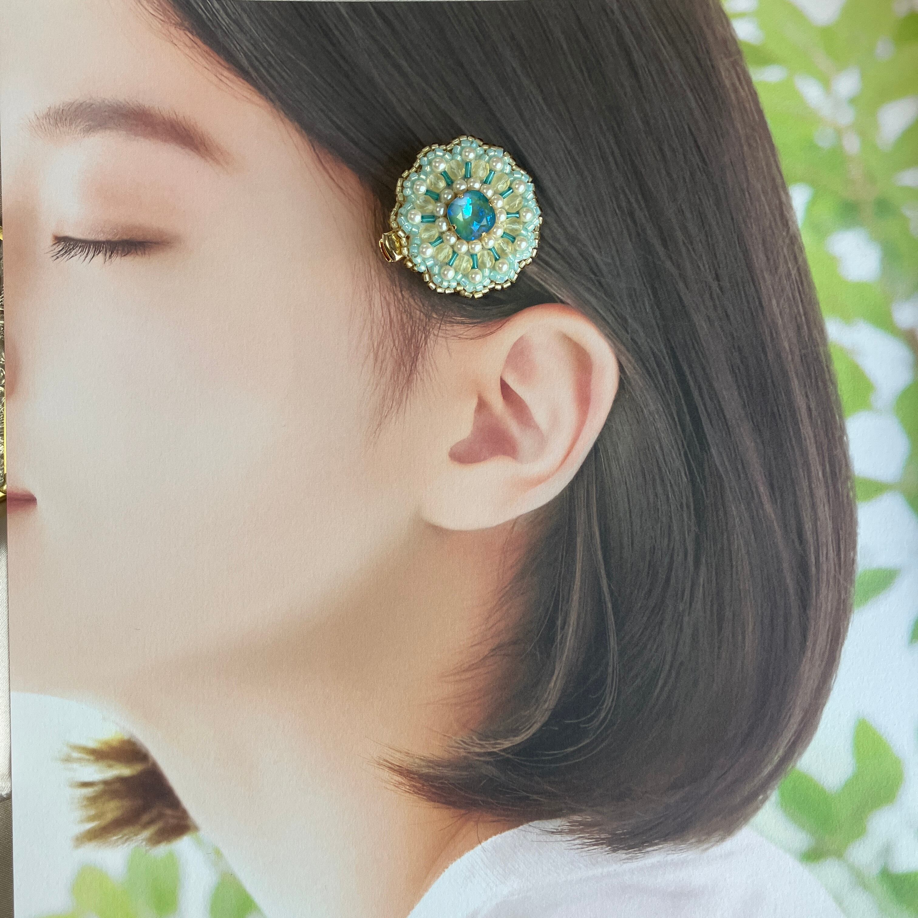 大き目のクリスタルガラスのビジューを中心に
